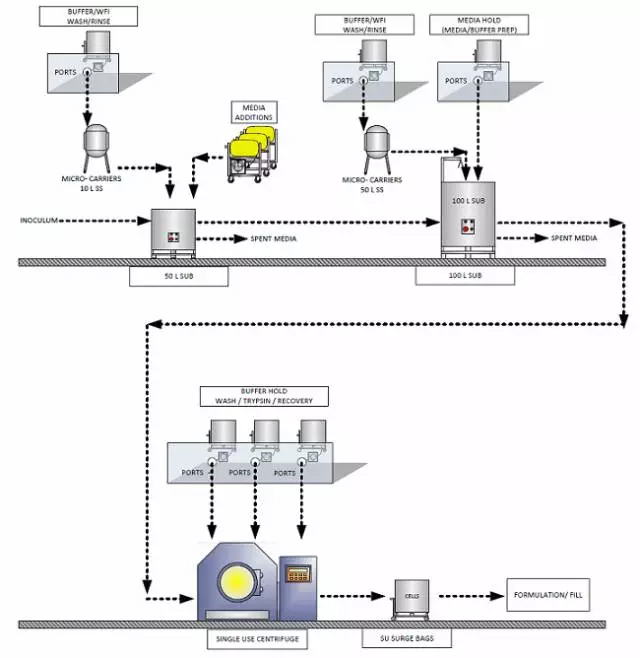 Flow diagram of a microcarrier process 一些细胞疗法通过细胞分泌物(例如,细胞因子,外来体)而不是通过细胞本身来实现功效。这些因素有可能比整个活细胞容易制造,并且存储要求低。通过大型(非台式)3D固定床生物反应器(如Pall's iCELLis)或通过具有微载体的搅拌生物反应器进行灌注,可实现紧凑型大规模商用系统。 与自体治疗一样,同种异体治疗的冷链物流也将转移到经销商处理的成品冷藏箱的传统模式中,以便运送至各个销售单位。其他需要考虑到的新问题可能包括通过医疗设备进行管理或输注或预处理,这些过程与环境控制制造设施中的操作相同。欧盟GMP附则1和附件2的基本概念将有助于我们设计这些设施,同时确保在生产环境中我们的流程工作。就治疗患者的强大价值而言,同种异体疗法的操作成本是相当低的。 其他优化策略 所有的细胞疗法都存在一些常见的过程注意事项,以确保其可重复性和可靠性。培养基再循环可提高效率和质量(批次均匀性),并结合在线监测,可优化培养基使用。我们期望在细胞治疗过程中看到对血清功能依赖的降低,这不仅可以降低工艺成本,更重要的是可以减少流程/产品变异性以及病毒清除和污染的要求。 细胞疗法在治疗许多关键疾病上潜力无限。我们将其产业化就是通过降低患者的成本,改善这些疗法的可用性,确保产品交付的质量和开发实用的物流解决方案,来确定这些流程/产品/系统的长期成功。全面扩大开发自动化生产流程会在降低成本的同时改善细胞疗法的物流。 参考出处 《Cell Therapy: Process Design Considerations To Support Commercialization》 |