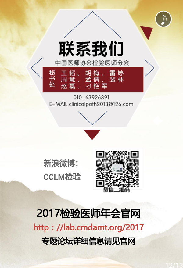 2017-4-28 23:42| 编辑: 小桔灯网| 查看: 4221| 评论: 1|来源: 中华检验医学网