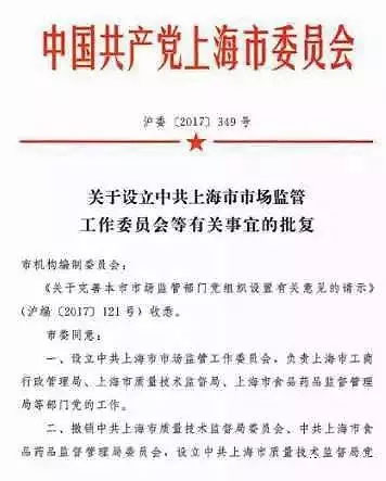 近日,关于设立上海市市场监管工作委员会的文件已经下发的消息开始在网络上流传。