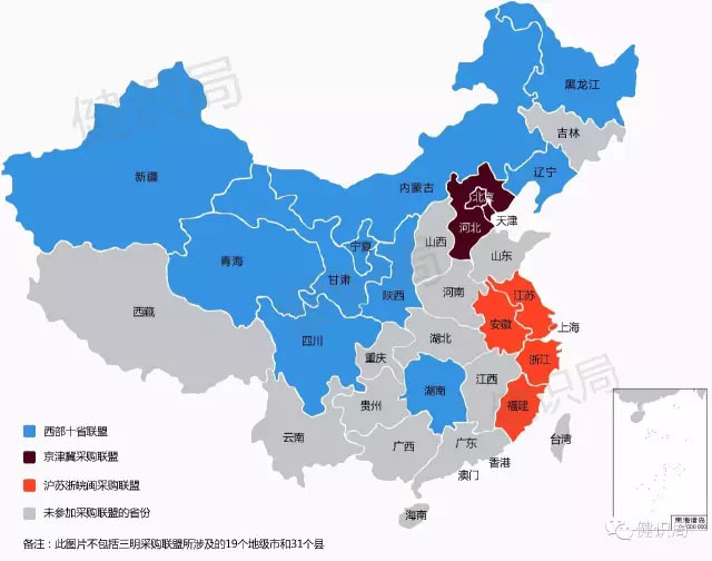 医用耗材大降价真的要来了! 近日,陕西省卫计委发布消息称,高值医用耗材省际采购联盟新增湖南、辽宁、黑龙江三省,至此,加入该联盟的省份已增加到了10个省份。 这并不是国内唯一一个耗材采购联盟。据健识君统计,国内医用耗材领域已集聚规模的采购联盟有:“西部联盟”、“京津冀采购联盟”、“沪苏浙皖闽”的华东四省一市联盟和三明采购联盟。 除了京津冀和华东四省一市联盟的地域相对确定外,西部联盟和三明采购联盟的成员都在不断扩充,采购体量也在增大。