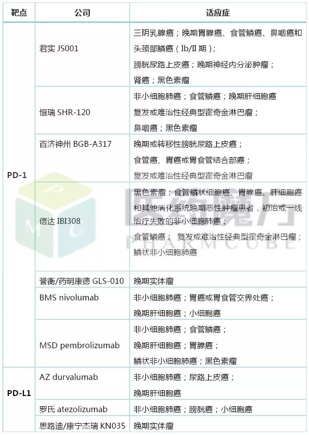表2 各公司PD-1/PD-L1药物的国内临床试验数量 *:有一项是Ib/II期;**:有一项是II/III期 大家都知道,I期临床是安全耐受性和药代动力学试验,当然还有其他一系列研究;II期是剂量、瘤种探索性研究,III期则是确证性研究。但现在临床研究对试验分期越来越模糊,虽然在方案中会写上分期,但往往分为早期研究和确证研究,也许有些企业完成I期就直接III期,或者完成II期就直接申报生产以达到中国第一个PD-1药物获批,只要在这些研究中完成监管部门需要我们回答的安全性、有效性等问题即可。现在良好的和CDE沟通机制也为这些企业进入III期确证性研究提供了信心。 百济神州的I期研究就是一个样本量达到300例的多中心大型试验,而信达的I期研究样本也达到了104例,并且在这个I期试验中又分Ia和Ib,Ia期招募标准治疗失败的局部晚期、复发或转移性实体瘤患者,Ib期又分为4个队列,队列A的适应症是黑色素瘤,队列B的适应症是食管鳞状细胞癌、胃腺癌(包括胃食管结合部腺癌)、肝细胞癌和其他消化系统晚期恶性肿瘤患者,队列C的适应症是一线治疗失败的非小细胞肺癌,队列D的适应症是初治的非小细胞肺癌。 03、适应症的选择 曾有专家对国内的PD1点评道:适应症无法差异化了,疗效无肿瘤特异;国内高发瘤种需要考虑失败风险;罕见适应症竞争少,可能争取加速审批机会;“大”适应症市场广阔,竞争多;药企多采取全面布局,重点跟进,但早上市是王道。