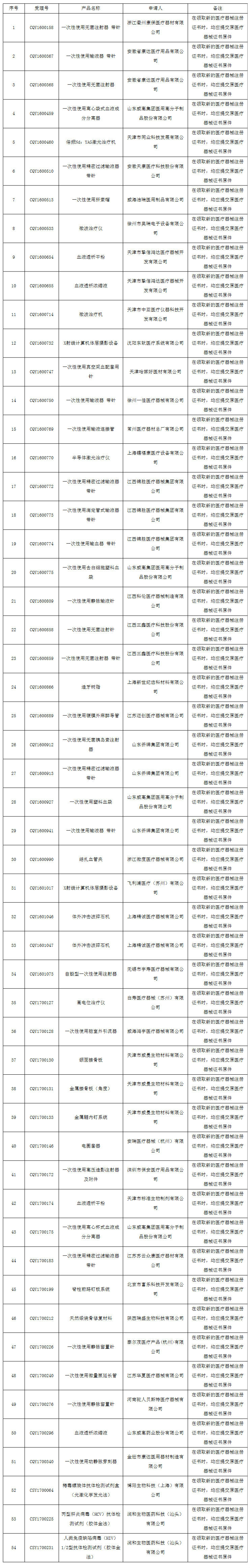 2017年7月10日,国家食品药品监督管理局发布58个医疗器械准产批件,具体内容如下: