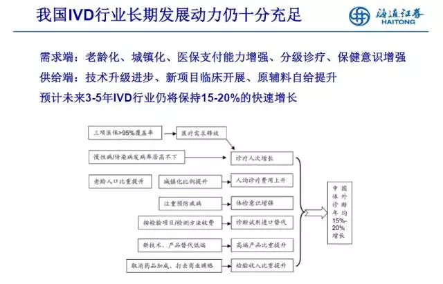 长期来看,非常看好IVD行业未来的的发展动力,包括城镇化、老龄化,以及各种新的技术进步等。未来三到五年IVD行业仍然能够保持15—20%快速的增长。