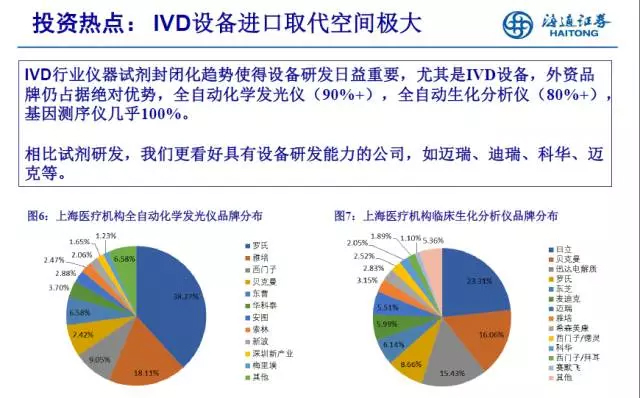 IVD在设备这一块,还是非常大的依赖于外资企业,这块进口渠道空间极大。所以试剂研发端有非常优秀的公司,但确实更看好具有设备研发能力的公司。