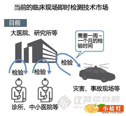 未来的临床现场即时检测市场 DNA和病毒检测以前一直是在大型研究机构集中进行。小诊所和中小医院如果想做稍微专业一点的检测,只能把血液和粘膜等样本送到研究机构,然后等待结果,通常需要等少则一周,多则一个月才能拿到检测结果。而随着技术的发展,DNA分析等专业分析检测工作已逐渐从研究机构转移到一线医疗单位,只需要几分钟到半小时就能获得结果的POCT技术有望实现患者在门诊室直接进行检测。POCT检测设备已经比以前大幅缩小了体积,检测费用也大幅降低,以前不用医疗保险的话需要几万到几十万日元(数百到数千美元)的检测费用已降低到几百日元到几千日元(几美元到数十美元),能够以低成本快速检测病毒、细菌、癌症及成人病。 随着检测技术的普及,医疗以外的领域也开始采用POCT技术。例如家庭保健、百货商店的皮肤诊断、事故和灾难现场、通过农作物和家畜的DNA分析进行品种改良,以及食品行业的食品种类和产地认证等。 过去检测病毒的常见方法是利用生物体及其细胞进行培养、分离,然后用显微镜观察,通常耗时约1-2周,无法用于POCT。目前,面向POCT的病毒检测方法利用的检测原理主要是两种,一种是利用抗原抗体反应的方法,一种是利用DNA和RNA的互补性的方法。第一类方法包括免疫层析法、SPR法等,其中最常见的是免疫层析法,由于这种方法不进行培养和扩增,所以存在灵敏度较低、样本中的病毒较少时无法检测出病毒的问题,实现高灵敏度是重要研究方向。第二类方法包括PCR法、LAMP法等,其中PCR法是代表性方法,近期出现的利用DNA分析技术的POCT技术的进展,主要取决于PCR法的进展。这类方法的缺点在于DNA在复制时或多或少会出现错误,即会发生基因突变,DNA和RNA的扩增数量越多,这种错误也越多。因此,要想准确分析DNA碱基序列,需要使用在不扩增下检测DNA的技术。 由于预见到POCT市场会扩大,一些仪器企业先后开发了便携式检测系统,如NEC开发的便携式DNA身份认证装置,产业技术综合研究所(AIST)的便携式PCR仪,及15分钟即可判断是否感染病毒流感病毒和诺如病毒并在智能手机上显示结果的便携式病毒检测系统。 市场多年停滞 其实,早在10多年前就有着DNA分析和POCT技术将普及的观点,一些专家和分析师认为其潜在市场非常大。然而,市场并未按照这些预测增长,直到一两年前,DNA分析技术的全球市场在长达数年里一直保持着约800亿日元/年(约合7.80亿美元/年)的规模(其中日本市场约为50-60亿日元/年),每年都没什么增长。