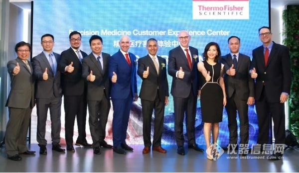 赛默飞高级副总裁及亚太区新兴市场欧洲中东非洲总裁蒋文康(Syed Jafry),赛默飞中国区总裁江志成(Gianluca Pettiti)及众嘉宾参与赛默飞中国精准医疗客户体验中心揭牌仪式 新落成的精准医疗客户体验中心将重点展示赛默飞领先的基因组、蛋白质组、代谢组等多组学产品、平台及服务,由此体现企业应用于精准医疗领域广泛并不断增长的产品组合。体验中心致力打造多元的客户活动中心,客户可通过该中心协作建立标准化精准医疗平台,开展研究及临床领域合作,体验赛默飞的平台及其应用,获得专业的客户培训并参与企业社会责任活动。