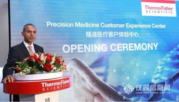 赛默飞高级副总裁及亚太区新兴市场欧洲中东非洲总裁蒋文康(Syed Jafry)先生致辞 赛默飞高级副总裁及亚太区新兴市场欧洲中东非洲总裁蒋文康(Syed Jafry)先生表示: 中国是赛默飞最重要的市场之一。作为科学服务领域的世界领导者,赛默飞不断巩固自身实力并深化其在中国市场的布局与投入。此次,我们将体验中心选址于广州是一项具有战略意义的决策,广州市引领中国市场的医疗领域发展,而体验中心的建立旨在依托赛默飞精准医疗领域的产品优势,从而为更多本地客户提供服务。 赛默飞还隆重发布其最新基因测序产品,将有效助力客户提升基因测序效率。全新SeqStudio基因分析仪采用一种含有毛细管阵列、聚合物储存以及阳极缓冲液的多功能卡夹,可大幅简化准备工作和缩短手动操作时间。