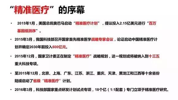 ![]() 精准医疗是不是一个新概念?其实,早在东汉时期,张仲景在《伤寒杂病论》就提出了辩证论治,这其实就是精准医疗理论的雏形,每个病例要有不同的客观地治疗方法。而再比如《素问·五常政大论》:"西北之气,散而寒之,东南之气,收而温之,所谓同病异治也。"提出的同病异治以及中医精髓之一:异病同治,无不在漫长的历史临床实践中,对提高临床疗效产生十分重要的指导意义。 为什么到2015年,精准医学才出现在我们视野之中? NIH(美国国立卫生研究院)认为,三个技术的飞速发展,推动了精准医疗的爆发。第一个就是基因测序技术,这个主要是以二代测序为代表的基因检测,它无论从速度、准确度还有成本,都呈现了指数级的下降。这里面也有基因捕获技术的推动作用,以及液体活检技术的发展,使精准医疗时机越来越成熟。第二就是生物信息技术,包括云计算,数据整合分析方法,对数据分析、数据解读的推进。第三个也是现在非常活跃的人工智能,让我们的分析能够更加智能,可以发现很多新的东西,学习到新的规律做基因的预测。 在之前的文章我们已经谈过云计算、数据分析、人工智能,点击文章AI+大数据,如何助力精准医疗?现在我们来简单聊聊基因测序技术。 最早是人类基因组计划,十几个国家,花了十几亿美元做了好多年。测序越来越成熟以后,全基因组测序越来越方便,在不同的物种里面都取得了大量的数据积累。以人类来说,正常人有30亿个碱基对,哪怕是其中一个碱基排序不同,都有可能会造成高矮胖瘦等各种表面特征的不同。而其中一些序列的缺失或者变异,也是造成很多疾病的根源之一。 如果从字面上理解,全基因组测序,就是检测出全部30亿个碱基对是怎么排列的,从第一个到第30亿个,一个都不落下。检测人类所有基因组信息,不针对任何单个疾病或者因素的基因,但又囊括了之前所有单个基因检测要用到的信息。全基因组测序可谓是基因组最为全面的研究方案。基因组信息已能用于鉴定遗传疾病,查找驱使癌症发展的突变,追踪疾病的爆发。 迅速下降的测序成本以及处理大样本数据能力的提升都使得如今的测序者可将全基因组测序视为基因组研究的最强有力工具。 再往前进一步缩小一下范围,我们对全部的基因编码区进行测序,也就是耳熟能详的的外显子测序。其实外显子测序也是基因捕获的一种,只是把所有基因编码区进行了富集。在人类基因中大约有180,000外显子,占人类基因组的1%。人类基因组的蛋白编码区大约包含85%的致病突变。外显子组测序主要用于识别和研究与疾病、种群进化相关的编码区及UTR区域内的结构变异。结合大量的公共数据库提供的外显子数据,有利于更好地解释所得变异结构之间的关联和致病机理。 最后再精准一点,就是目标区域捕获测序,它对特定应用场景中任何的基因,或者基因片段,甚至可以是非编码区域的,包括一些热点进行设计,然后开发出用来特定基因检测的panel。将感兴趣的基因组区域定制成特异性探针与基因组DNA进行杂交(固相或液相),将目标基因组区域的DNA片段进行富集后再利用第二代测序技术进行测序。这种新的方法与PCR方法相比,通量高,同时能节省大量的时间及成本。做一个比喻,《三国演义》中赵子龙千军之中救阿斗。而这个过程刚好十分相像。 ![]() 在精准医疗大部分的应用场景中,很多地方都有它的用武之地,可以是儿科遗传病精准医疗、肿瘤精准医疗、安全用药、精准用药等。 |