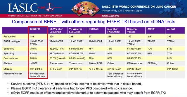 ![]() 王洁 教授 医学科学院肿瘤医院肿瘤内科 主任医师,教授,博士生导师 国家杰出青年基金获得者 中国抗癌协会肺癌专业委员会常委 北京医学会肿瘤分会副主任委员 中华结核与呼吸杂志、中国肺癌杂志Lung Cancer、Clin. Lung Cancer编委 国家百千万人才工程入选者、获中国突出贡献中青年专家称号 国务院政府特殊津贴获得者 2017年WCLC会议第三天的口头汇报,再次传来中国声音。王洁教授团队的 BENEFIT研究为液体活检领域再添新桂。 众所周知,晚期NSCLC已经进入分子分型基础上的个体化治疗新时代。精准的分子分型需要合格的肿瘤组织标本进行检测,然而在临床实践中,部分患者,组织标本不足或难以获得。既往已有很多研究证实血浆ctDNA的EGFR突变检测和组织标本检测结果具有很好的一致性,并已作为一代EGFR TKI的伴随诊断获批。但既往研究均基于回顾性数据,或前瞻性研究的探索性回顾分析。 BENEFIT研究是目前第一项前瞻性的临床研究,进一步明确了ctDNA EGFR突变指导的一线吉非替尼疗效,同时探索EGFR突变等分子标志物的动态变化意义。 ![]() 研究的结果显示,ddPCR检测的ctDNA EGFR突变指导的一线吉非替尼治疗的客观有效率为72.1%,治疗8周的疾病控制率为92.3%,中位PFS为9.5个月。该结果与既往IPASS(PFS9.5个月)、 WJTOG 3405 (PFS 9.2个月)等组织EGFR突变基础上的一线EGFR-TKI治疗研究基本一致。 ![]() 外周血分子标志物的动态监测发现,在治疗的第8周,EGFR突变的检出率与治疗的疗效显著相关,即第8周时EGFR敏感性突变未检出的患者PFS较突变持续阳性的患者显著延长(11m vs 2.1m, HR=7.28, p<0.0001)。该研究同时动态监测了EGFR-TKI耐药基因T790M突变的变化,结果提示T790M突变的中位出现时间为7.6个月(95% CI 6·0,10·0),而从T790M突变出现到疾病进展的中位时间为2个月(95% CI 2·0,4·9),与既往FASTACT2等的研究结果一致,即分子进展可能出现在肿瘤的影像学进展之前,从而提示分子进展或可为三代EGFR-TKI介入的最佳时机,但这一推断仍需临床研究进一步证实,正在进行的 APPLE研究将有助于明确这个问题。 ![]() BENEFIT研究同时利用NGS技术分析了基线外周血中多基因的变异。结果提示在180例的患者中,34例(18.9%)携带有除了EGFR突变之外的驱动基因变异(如MET, ERBB2, KRAS, BRAF, RET or ROS1) 和/或抑癌基因的变异(TP53, RB1, and PTEN)。研究将这部分患者分为三组:第1组患者仅携带EGFR敏感性突变,第2组同时具有敏感性EGFR突变和TP53突变,第3组除EGFR敏感性突变还携带其他驱动基因变异(如MET, ERBB2, KRAS, BRAF, RET or ROS1) 和/或抑癌基因的变异(TP53, RB1, and PTEN)。结果提示仅携带EGFR敏感性突变的患者疗效最佳,各组相应的PFS分别为13·0 个月,、9·2 个月以及5.4 个月(HR 3·28; 95% CI 2·06–5·03, p<0·0001)。 ![]() Hye Ryun Kim教授对该研究进行了点评,并对研究设计、研究结果及其意义进行了肯定。Kim教授认为该研究设计严谨,以对比组织检测为基础,肯定了 BENEFIT血液结果与组织的一致性,以及检测的敏感性、特异性、疗效及生存预测的可靠性。她认为该研究第一次前瞻性证实了外周血ctDNA检测EGFR突变预测一代EGFR-TKI疗效的可行性,为外周血检测EGFR突变指导一线EGFR-TKI治疗提供了更高级别的循证医学证据。同时,也提出了针对进一步分子检测的三个建议,即T790M突变的血浆检测平台的进一步探索;NGS在吉非替尼治疗疾病进展时留取血液或组织标本进行多基因分析;以及利用ddPCR对EGFR敏感性突变和T790M突变的动态变化进行定量分析。相信针对Kim教授的这些问题,我们都可以在BENEFIT研究即将出炉的分子标志物动态监测分析中找到答案。 ![]() ![]() ![]() |