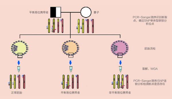 新突破 理论上,平衡易位携带者生育染色体正常后代的概率仅有1/18,生育平衡易位携带者后代的概率为1/18,另有16/18胚胎因染色体非整倍体而流产或生育畸形儿。 目前,胚胎植入前遗传学诊断是解决这类问题的有效途径,但是传统方法诸如FISH、基因芯片等常规技术只能在植入前胚胎水平诊断染色体非整倍体,无法识别胚胎的染色体平衡易位携带状态,更无法阻断平衡易位向子代传递。因此,患者移植胚胎后仍有约50% 的几率生育携带平衡易位的子代,家庭将再次承受高发反复流产、生育畸形患儿的风险,这带来巨大的精神和经济负担。 如今,这一领域有重要进展。Thermofisher与苏州贝康医疗器械有限公司共同组建的 “全球生殖与遗传临床研究中心”,成功研发了BaseMapping技术,实现了单端高通量测序的平衡易位携带者筛查,为更多平衡易位携带者生育健康后代带来了希望。 具体来说,BaseMapping技术通过环化DNA,对平衡易位携带者的样本DNA进行环化处理,对所获得片段末端DNA序列进行高通量测序,通过数据分析能够有效寻找平衡易位的断点,然后利用长链PCR技术明确断点位置,从而能够有效的检测平衡易位携带者。 技术优势 据介绍,BaseMapping技术首先采集平衡易位携带者的细胞样本,通过DNA片段化然后环化,利用特有的技术获得环化接点位置的DNA序列。由于序列片段长度适宜,可以利用Ion Proton平台测通,通过数据分析明确平衡易位的断点。利用Long Range PCR技术,可精确定位断裂点位置至核苷酸水平。 根据断裂点信息,试验人员设计特殊的PCR引物,同时在断点上下游设计SNP位点,对胚胎活检样本WGA产物进行检测,即可区分正常胚胎和平衡易位携带胚胎,从而选择正常的胚胎进行植入,阻断平衡易位遗传。