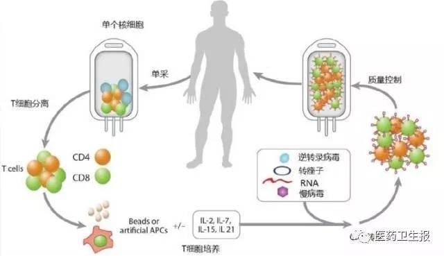 ![]() CAR-T治疗包括5个步骤。一是从患者身上分离T淋巴细胞。二是利用基因技术将T细胞改造成CAR-T细胞,变成一个带有精确导航系统、可以针对癌细胞发动自杀性攻击的细胞。三是在实验室大量培养扩增这种CAR-T细胞,达到几十亿个甚至上百亿个。四是将这些能发动自杀性攻击癌细胞的CAR-T细胞输入患者体内进行治疗。五是严密监护,对症治疗。因为改造后的CAR-T细胞植入患者体内会产生免疫反应,如高热、水肿、心慌,甚至脏器功能不全危及生命。 开展CAR-T治疗,对技术和专业水平要求很高,必须在有条件的医院和科室才能进行。 自2012年艾米丽接受CAR-T治疗并获得成功以来,全球开展CAR-T治疗的医疗中心近300家,超过3000例血液肿瘤及其他肿瘤患者接受了该项治疗。我国CAR-T治疗基本与欧美同步进行,目前已在北京、上海、武汉、郑州等地多家医院开展了临床研究,患者总数超过500例。 早在2012年,河南省肿瘤医院就整合血液科、生物治疗科资源,由笔者领衔成立“造血干细胞与生物治疗创新团队”,进行CAR-T细胞治疗的基础和临床应用研究,建立了包括CAR-T细胞制备、生物活性检测和临床安全性评估等一系列平台。我们团队通过对美国CAR-T细胞制作流程的研究,发现其细胞制备周期长、流程复杂、成本高,很难在国内推广应用。 ![]() 随后,河南省肿瘤医院结合国内实际,成功研制并开发了适合中国患者的CAR-T细胞疗法,其制备流程简单,培养周期短,成本降至2万元,在保证治疗效果的基础上,总费用降至10万元。