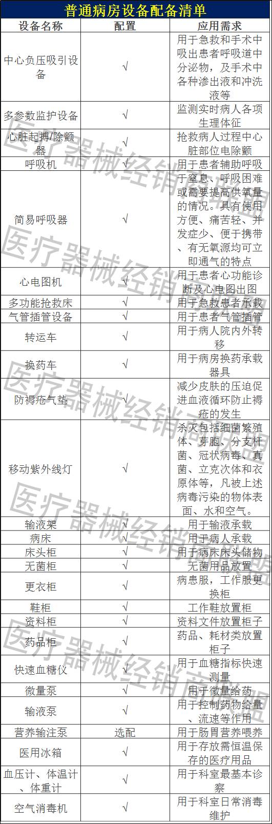 乳酸菌今天为大家整理了医院手术室、急诊科、病房、检验科4个科室需要配备的设备清单,诚意满满,拿走不谢啦~ 手术室 手术室按手术有菌或无菌的程度,手术间可划分成以下5类: 那么,作为一名医疗器械经销商,你该如何为医院推荐手术室设备方案呢? 乳酸菌这里为大家整理了两份手术室必备设备清单,除了汇总版,还有一份是民营医院手术室必备设备清单,毕竟民营医院占全国医院总数52.7%,已经超过了公立医院,市场潜力巨大。 急诊科 乳酸菌先和大家一起来看看急诊科设备构成: 那么,作为一名医疗器械经销商,你该如何为医院推荐急诊科设备方案呢? 病房 下面,我们主要介绍医院最常配置的普通病房。作为一名医疗器械经销商,你该如何为医院推荐基本病房设备方案呢? 检验科 在介绍检验科设备之前,乳酸菌先来和大家一起看看检验科的工作内容。 作为一名医疗器械经销商,你该如何推荐医院检验科设备方案呢? |
