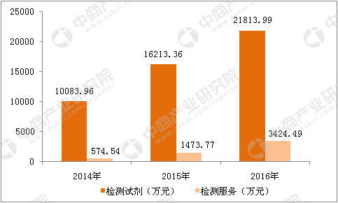 数据来源:中商产业研究院 2、厦门艾德生物医药科技股份有限公司 公司是我国首家专业化的肿瘤精准医疗分子诊断试剂研发生产企业,公司具有自主知识产权的核酸分子检测技术(ADx-ARMS®)是目前国际上肿瘤精准医疗分子诊断领域领先的技术之一,在肿瘤相关基因突变检测方面具有敏感、特异、简便、快捷的优点,适合于各种检测样本,并可用于多重基因高通量检测,达到行业公认的国际先进水平。 公司主营业务是肿瘤精准医疗分子诊断产品的研发、生产及销售,并提供相关的检测服务。公司产品主要用于检测肿瘤患者相关基因状态,为肿瘤靶向药物的选择和个体化治疗方案的制定提供科学依据。公司近几年主营业务收入具体情况如下: