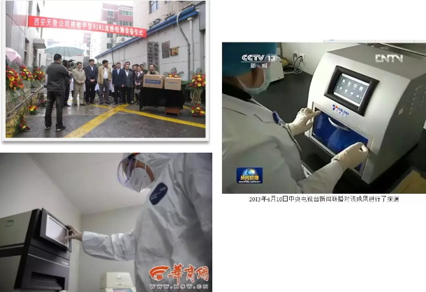助力流感疫情防控:天隆核酸提取及荧光定量PCR设备在2009年检出陕西第一例甲型H1N1流感,2013年助力国家疾控检测H7N9禽流感(CCTV报道),2017年检出陕西第一例H7N9禽流感(华商网报道)。