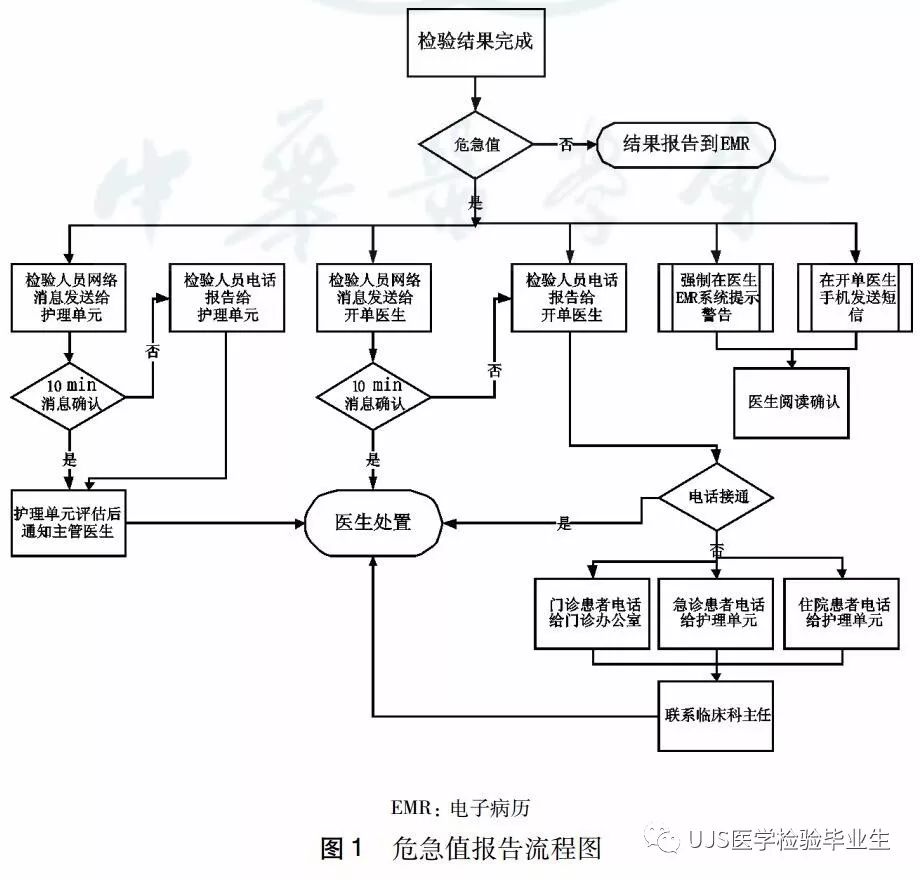 中华急诊医学杂志2013年10月第22卷第10期 检验危急值在急危重病临床应用的专家共识组 美国临床实验室修正法案(CLIA’ 88)、美国医疗机构认可联合委员会(JCAHO)、美国病理家协会(CAP)、国际标准化组织ISO 15189:2007、患者安全目标(NPSG)均要求临床实验室建立规范化的危急值报告制度,尽管危急值报告已有40年历史,但由于检测系统、方法学、临床认知及临床能力的差异,危急值报告程序及步骤一直未能实现标准化。如何选择危急值项目及其界限、如何处置危急值将直接影响到患者的安全。因此,提高对危急值的认识,并规范其临床应用,对于保障患者生命安全具有非常重要的意义。 1、危急值的定义 1972年危急值(critical value ,panic value)由Lundberg首次提出,现已被世界各地所采用。本共识将其定义为: (1)危及生命的极度异常的检验结果,说明患者可能正处于有生命危险的边缘状态,如果不给予及时有效治疗,病人将处于危险的状态,或者立即给予治疗可明显改善预后。一旦出现这样的检验结果,应立刻报告给临床医师,提醒其立刻采取相应的治疗措施;否则将会因为错过最佳的治疗时机而使患者的生命安全受到威胁; (2)国家重大传染病,反映那些需要引起我们足够重视的患者的检验结果,如H7N9等。 2、危急值的适用范围 (1)危急值可包含检验科、放射科、病理科、心电图等部门的危急值报告,本共识仅限检验科的危急值项目; (2)儿童危急值界限应该比成人的界限更窄,以更好地检测出可能的危急值,本共识未涉及,仅限定为成年人; (3)本共识可供医疗机构急危重患者发生危急值的临床应用。 3、危急值的管理要求 国内外相关法规对危急值报告提出了明确的要求。美国临床实验室改进修正案明确要求临床实验室必须报告危急值,并要求在质量体系文件中阐述危急值概念及危急值结果的报告程序。美国病理学家协会的实验室认可计划、国际标准化组织ISO15189均将规范的危急值报告列入认可要求。2004年,WHO开始组建患者安全国际联盟(WAPS),以促进患者安全,加快患者安全政策的制定和实施,并由相关委员会专门负责危急值报告政策的研究。之后美国医疗机构认可联合委员会开始实施患者安全目标,2005年,JCAHO发布指南,实验室危急值报告成为美国国家患者安全目标的一部分,危急值报告为其中最受关注的目标。此后,欧洲、亚洲及其他国家的卫生行政部门均针对危急值报告出台相关政策,危急值报告已作为各国卫生行政部门评价医院的重要指标。 上个世纪90年代,危急值概念进入中国。经过近十多年的发展,自2007年起,国家卫生计生委(原名:卫生部)将危急值报告列入患者安全目标,要求各级医疗机构根据其实际情况,制定适合本单位的危急值项目和危急值报告制度,对危急值报告项目实行严格质量控制并能提供咨询服务。卫生计生委等级医院评审标准实施细则(2011版)亦对危急值报告提出明确要求,危急值管理在中国已成为重要的医院评价指标,越来越多的受到各级医院的重视。 4、危急值项目的选择及危急值界限的确定 并非所有的检验项目都需要设立危急值,在制定这个项目表时应把确实有意义的试验包括进来,而不能把没有危急值意义的试验包括进来。项目太多反而容易降低临床对这些数值意义的认识和警惕性,同时也增加了实验室的工作量。不同性质的医院,应根据其工作特点选择相应的检验危急值。 4.1 危急值项目的选择 不同的实验室间纳入的危急值项目差异很大。CAP对美国623家医疗机构危急值报告的监测显示,常规化学和临床血液学危急值项目范围变化最大。1997年,美国临床病理学学会 ASCP管理委员会发布了“危急值实用参数”,列出了常用危急值报告项目。国外许多医疗机构网站上的危急值报告体系,均可作为危急值项目选择时的参考。我国卫生计生委在患者安全目标中明确要求,须将“血钙、血钾、血糖、血气、白细胞计数、血小板计数、凝血酶原时间、活化部分凝血活酶时间”列为危急值项目。 危急值的项目的确定应该由医院行政管理部门组织相关科室协商确定,一般情况下,危急值项目的选择可由实验室主任列出“可能危急值项目目录”,然后由临床科室、检验科、护理部、医院行政管理部门等人员共同论证确定, “可能危急值项目目录”制订时,应首先考虑“其结果严重偏离可提示患者生命处于危险状态”的检验项目,这些检验项目多是“结果异常是疾病发生发展的直接原因”,如钾、钠、钙、血小板、白细胞、血培养、脑脊液微生物检查、血药浓度等。有些检验结果的异常偏离是疾病转归的结果或表现而非原因,如淀粉酶、糖、肌酸激酶同工酶、肌钙蛋白I、肌红蛋白、尿素氮、肌酐、血气等,其亦能提示患者的生命处于危险状态,这些检验项目亦应列入危急值项目。和疾病的治疗转归有紧密联系的检验项目以及国家重大传染病,那些需要引起我们足够重视的检验结果,如H7N9等也可列入危急值项目。 基于以上阐述,对危急值项目选择共识如下: (1)凡是满足“结果的异常偏离可提示患者生命处于危险状态”这一条件的检验项目均可选择为危急值报告项目; (2)以卫生部临床检验中心组织的全国性的现况调查为基础,建立危急值项目; (3)公开发表的文献、资料等中推荐的危急值项目; (4)患者安全目标要求开展的危急值项目; (5)根据具体医院临床科室的