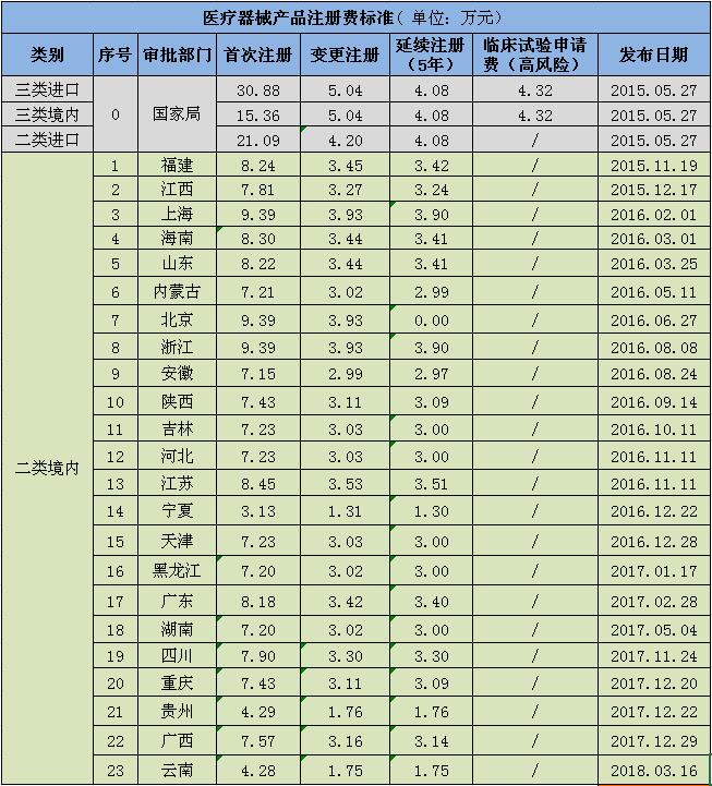 截至目前,我国共有23个省(直辖市、自治区)出台医疗器械产品注册费收费标准。