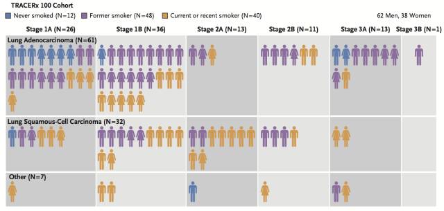 昨天,英国弗朗西斯·克里克研究所Charles Swanton教授领导的研究团队,同时在《新英格兰医学期刊》(1)和《自然》(2)杂志上发表两篇关于早期非小细胞肺癌的重要研究论文。 Charles Swanton教授 Swanton教授发现,对于早期非小细胞肺癌而言,染色体不稳定不仅意味着癌症开始恶化,还意味着患者预后较差(1)。液体活检作为一种无创监测技术,可以用于肺癌的早期复发动态监测,甚至可以比影像学检查提前一年发现癌症复发的迹象(2)。 肺癌是世界上最凶险癌症之一,不管是在中国还是在美国,肺癌导至的死亡人数在所有癌种里面最多(3, 4)。非小细胞肺癌约占所有肺癌的80%,约75%的患者发现时已处于中晚期,由于系统性化疗效果并不好,所以5年生存率很低。 然而,非小细胞肺癌的瘤内异质性和肿瘤进化的深入探索仅限于回顾性队列研究(1)。基于ctDNA动态监测的液体活检技术与早期肺癌复发转移之间的关系也没有建立(2)。然而类似的研究已经在乳腺癌(5, 6)和结直肠癌(7)中开展了,并且为这两种疾病的早期治疗做出了很大的贡献。 肿瘤进化示意图 英国政府在2014年启动了关于非小细胞肺癌的大型前瞻性临床研究TRACERx(Tracking Non-Small-Cell Lung Cancer Evolution through Therapy),意图从患者被诊断那一天开始采集患者的样本,分析患体内的基因变化,一直到患者死亡,探寻肿瘤异质性对治疗和预后的影响(8)。 TRACERx计划招募842名早期肺癌(I-IIIA)患者,此次是其中前100名患者的数据研究成果。通过对100名患者的327块肿瘤组织的外显子测序,Swanton教授团队发现了瘤内癌细胞之间确实广泛存在异质性(染色体结构变异和基因突变)。染色体倍增和持续的动态染色体不稳定性与瘤内异质性相关。拷贝数异质性升高与肿瘤复发和患者死亡相关性高。这说明染色体不稳定可以作为肺癌的预后因子,同时表明,单一位点取样有极大的局限性。 参加TRACERx的前100名患者状况 作为肿瘤进化领域第一个实时伴随性的大型临床研究,TRACERx的研究成果得到了肿瘤进化非常多的细节数据。这些数据对知道癌症的临床治疗有重大意义。于是,Swanton教授打算把它转化成临床应用。 早在2016年之前,Swanton教授与美国基因检测公司Natera展开了类似的合作。他们发现在I期和II期的非小细胞肺癌的血液ctDNA里至少可以检测到2个跟肿瘤相关的重要基因突变,使用2个重要基因突变作为早期癌症的标志物灵敏度和可信度都较高(9)。他们将这一发现作为通过血液检测早期癌症的方法。 此次Swanton教授再与Natera合作,结合他们在组织样本中发现的大量数据,探索利用液体活检是否可以用于非小细胞肺癌的动态监测。 肿瘤在不停的进化 最后在100名患者中,只得到了96名患者的血样。使用Natera的mPCR(multiplex-PCR)技术分析他们的血液样本,发现只有46名(48%)患者血液中出现了2个及以上的重要基因突变,有12名患者血液中只有1个重要基因突变。剩余的患者体内没有检测到重要基因突变。由此可见,对于早期癌症,液体活检的灵敏性还有待提高。 对于能够提前发现的48%的患者,液体活检还能做些什么呢?Swanton教授团队首先做了一个肿瘤复发预测的研究。他们从46名患者中挑选了24名患者,在手术前和手术后分别采集血样,并在术后每隔3-6个月采集患者血样,并同时利用影像学手段观察患者体内是否有新的肿瘤出现。 经过长达近2年的随访(这一点是极为难得的),这24名患者在手术治疗之后,有10名一直没复发,剩余14名患者肿瘤卷土重来。液体活检的表现如何呢?在14名复发的患者中,有13名患者血液中出现了2个及以上的基因突变;在10名没有复发的患者中,只有1个患者血液中出现了2个及以上的基因突变。这意味着液体活检在预测早期癌症的复发上灵敏度为93%,特异性为90%,这真是很漂亮的数据了。然而,更让人惊喜的数据还在后面。 由于Swanton教授团队在做液体活检的同时也给患者做了影像学检测,于是他们把二者的数据做了个比较。惊喜地发现,ctDNA检测发现肿瘤复发的时间要早于CT,提前的时间从10天到346天不等,中位时间是70天。 这还不算完,Swanton教授团队还分析了ctDNA对化疗耐药性的判断价值。其中有3名患者在手术后,接受了辅助性化疗,然而他们血液中基因突变的数量反而上升,结果在不到一年的时间内,他们三人肿瘤先后复发。相较而言,一名患者术后血液中的基因突变在辅助性化疗前后持续下降,最后降到没有,这名患者的肿瘤到论文发表时(近2年时间)都没有复发。 Swanton教授团队的研究表明,使用无创的液体活检实时动态监测患者血液ctDNA变化,可以给患者的肿瘤治疗打来极大益处。《自然》杂志在研究成果刊登之后,专门配了一篇评论性文章,文章指出,这些研究成果不仅可以直接转化成临床辅助诊疗的技术手段,也可以帮助研究人员揭示癌症发病、复发和转移的机制,还可以帮助研究人员开发更合适的治疗药物。 目前这一技术的使用,还受到一些影响因素的限制。例如肿瘤体积的大小,对结果影响较大。这也意味着研究人员需要开发更加灵敏的液体活检技术。 此外,目前的成本也是投入临床应用的一大障碍,据论文报道,目前Natera完成一个患者的多次监测需要1750美元。尽管价格不菲,但是相较于Guardant的每个样本7000美元的价格还是便宜了非常多。随着测序成本的不断下降,液体活检的成本下降也是必然趋势。它迟早会成为癌症监测的利