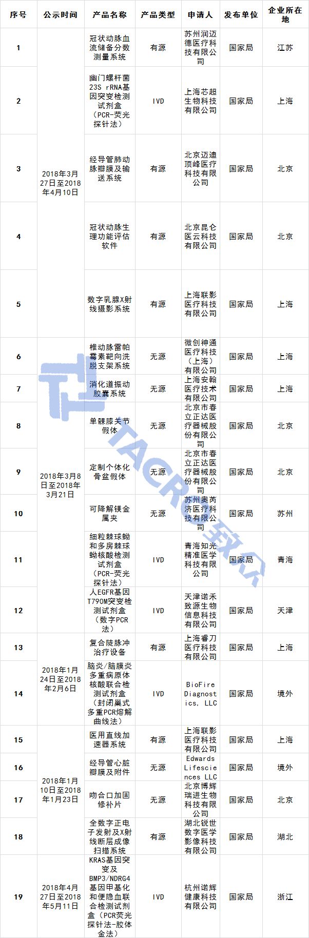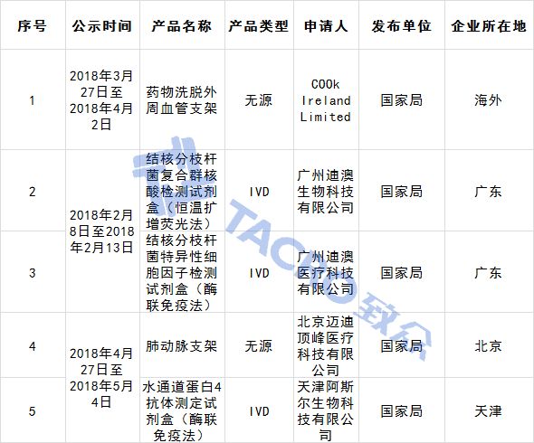 医疗器械优先审批申请审核结果公示(2018年第3号)