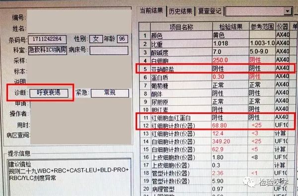 尿常规报告一般由尿液干化学检查结果+有形成分检查结果两部分组成,由于二者有些报告参数具有相似的临床意义,而检测的成分及原理却不同,因此常出现结果相互矛盾的情况。本文介绍的案例就是日常工作中比较常见的尿干化学血红蛋白与有形成分红细胞计数结果明显不符的情况。除此之外,还有白细胞酯酶与白细胞计数不符、蛋白与管型不符等。 患者女,93岁,急诊拟“呼吸衰竭”收治入院,入院后反复高热。尿常规检查仪器检测结果如下: 红细胞参数干化学与有形成分检测结果明显不符,提示镜检。 尿液干化学检查仪器各品牌检测原理基本相同,而尿液有形成分分析仪目前主要有流式细胞技术和数字影像技术两种技术平台(本实验室所用sysmex UF1000i属于流式细胞技术平台系列)。干化学和sysmex UF1000i仪器检测原理及二者常见结果不符原因如下。 1、干化学检测原理 尿干化学分析仪根据光电比色原理,通过多联试带上各种含特殊试剂的模块与尿液中相应化学成分反应发生的颜色变化,测定尿液中相应物质的含量。 2、sysmex UF1000i检测原理 利用半导体激光束照射经过荧光染色后在分析池中形成的鞘流样本,通过对各粒子产生的前向散射光、侧向散射光以及侧向荧光信号进行综合分析,从而对各个粒子进行识别,并作出红细胞、白细胞、细菌、管型等的定量报告。 3、临床常见结果不符可能原因 尿常规检查,当干化学与有形成分分析仪器检测结果明显不符时,要分别对干化学结果和有形成分检测结果进行原因分析,与此同时还要结合患者临床信息进行思考。在本案例中,笔者在审核尿常规报告时注意到,患者为老年女性,诊断:呼吸衰竭。 首先想到,这种情况患者常需要绝对卧床,为缓解尿潴留及减少并发症,方便护理及统计出入量,常需要留置导尿管排尿。经lis系统查看医嘱,患者确实已使用导尿管3天之久。众所周知,留置导尿管时间越长,发生尿路感染的可能性越大。结合尿液仪器检测结果干化学和有形成分白细胞参数均提示阳性(+++),初步判断患者因使用导尿管过久导至尿路感染可能。 其次,考虑到患者为危重症病人、年龄较大、机体免疫力低下,并且UF 1000i也报告研究参数YLC(酵母菌),结果为(1027.7/ul) (图1),进而怀疑患者可能并发了真菌感染。干化学血红蛋白与有形成分红细胞计数结果明显不符可能是由于真菌孢子干扰所致。 此外,也可能是药物因素引起干化学血红蛋白的假阴性,但在患者用药医嘱中,并没有发现使用会导至尿干化学血红蛋白假阴性的药物。对标本进行离心取沉渣显微镜检查,镜检结果:RBC 1~3/HP、WBC 50~60/HP、酵母样真菌++/HP(图2)。证实患者尿液干化学血红蛋白与有形成分红细胞计数结果不符是由于真菌孢子干扰所致。另外,我们发现患者亚硝酸盐结果阴性与尿路感染不符,是因为革兰阳性菌(如肠球菌)和酵母菌一般不能将硝酸盐转化为亚硝酸盐,故阴性结果不能排除泌尿系统感染的可能。随后患者中段尿细菌/真菌培养和鉴定,细菌结果:屎肠球菌,真菌结果:光滑念珠菌。 图1 UF 1000i标本检测结果界面 图2 尿沉渣显微镜镜检图片(×400) 随着自动化尿液分析仪的广泛应用,尿液检查的分析速度大大加快,且检测精密度高、生物安全性好,但不足之处是标本中含杂质较多时,有形成分难以准确识别、假阳性率高。因此,至今没有任何一种仪器能够完全代替人工显微镜检查,尿沉渣显微镜检查仍然是“金标准”。作为一名检验人员,在尿液检查时,不仅要掌握实验的规范操作,对于尿液中各种有形成分的形态特征、出现假阳性或假阴性结果的干扰因素以及仪器的性能也要十分熟悉。此外,检验人员还应具备一定的临床知识,能够将检验与临床结合,从患者的一些临床信息,初步判断结果异常的可能原因,从而有针对性的进行检验和处理,切实为临床提供准确、有价值的检验诊断报告。 (1)应用抗生素治疗引起正常菌丛失调,尤其是长期大量应用广谱抗生素时。 (2)激素、免疫抑制药的使用以及肿瘤患者行放射治疗和(或)化疗,使机体的防御功能减弱。 (3)留置导尿管,尿路畸形等尿路局部抵抗力下降。 (4)慢性严重疾病致使体质极度虚弱。 (5)糖尿病患者,抗念珠菌的功能降低,当血糖>8.34mmol/L(150mg/dl)时,念珠菌生长率提高。 (6)尿pH:念珠菌生长的适宜pH是5.1~6.4,正常尿液呈酸性,有利于念珠菌生长。 参考文献: [1] 牛之霞.真菌性尿路感染的发病机制与诊断标准[J].中国处方药,2014,12(04):144. [2] 王小明,张永根,廖洁.留置导尿危重症患者真菌性尿路感染分析[J].实验与检验医学,2012,30(01):55-56. [3] Carol A. Kauffman. Diagnosis and Management of Fungal Urinary Tract Infection[J]. Infectious Disease Clinics of North America,2014,28(1). 说明:本文为中华检验医学网、检验医学微信公众平台全网首发 |