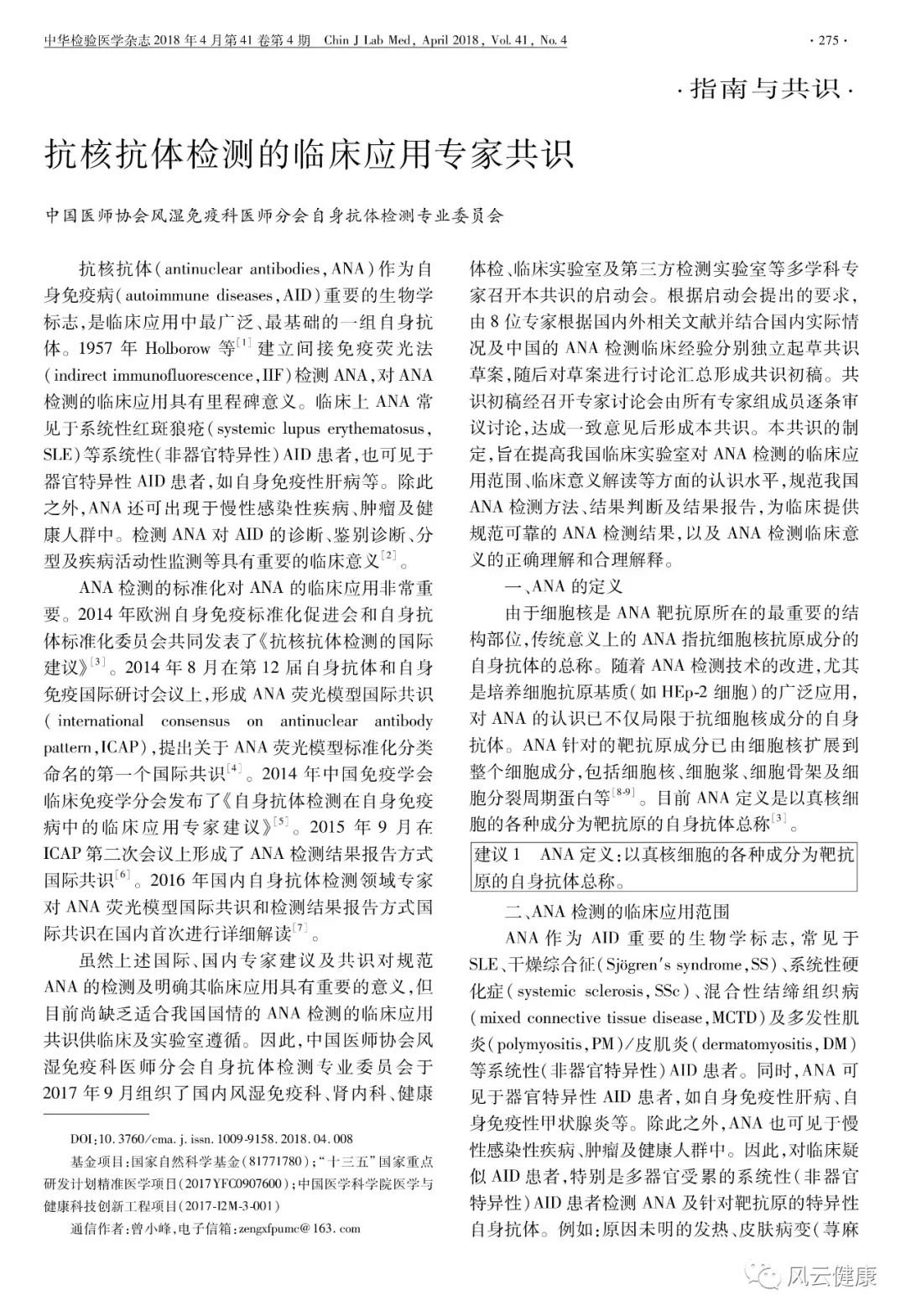 本文转自 中华检验医学杂志2018年4月第41卷第4期