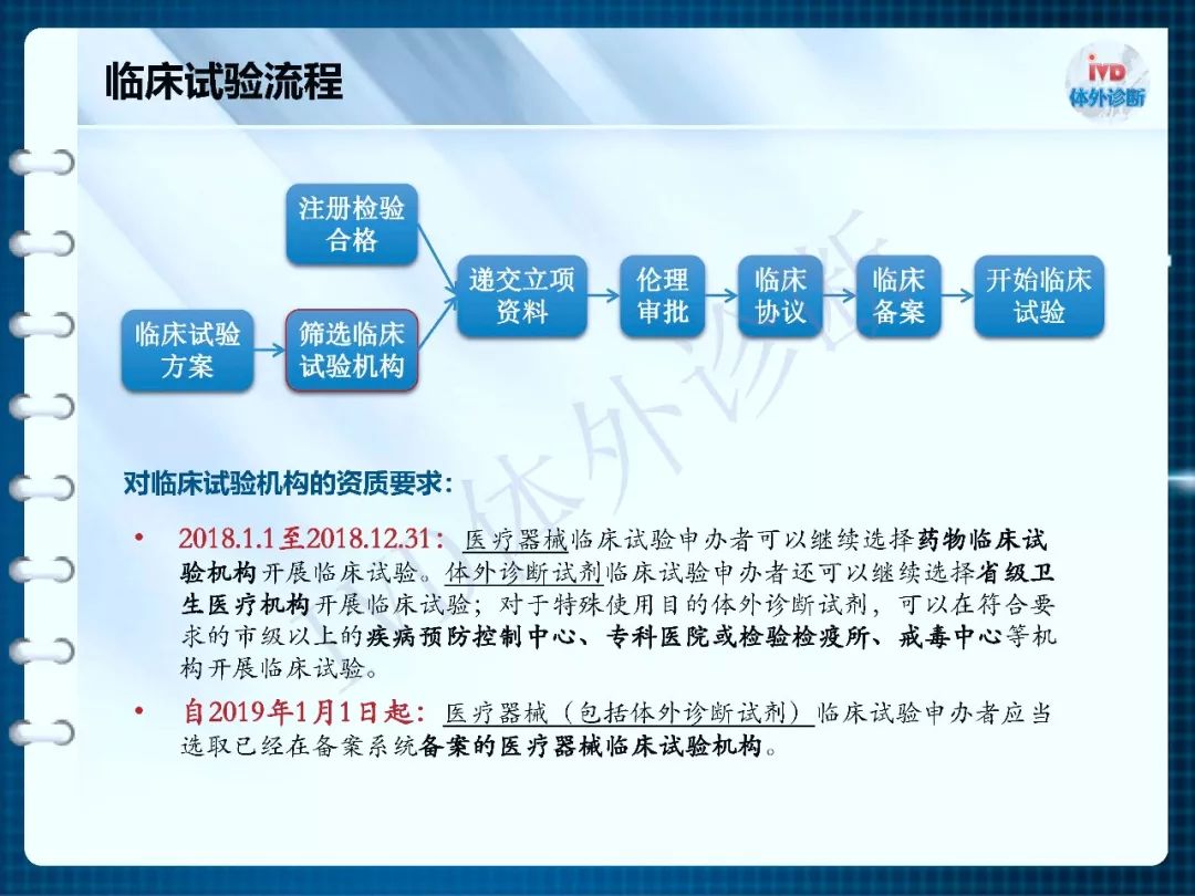 为了保证临床试验工作的持续开展,自2018年1月1日至2018年12月31日,医疗器械临床试验申办者可以继续选择经食品药品监管总局会同国家卫生计生委认定的药物临床试验机构开展临床试验。其中,体外诊断试剂临床试验申办者还可以继续按照《食品药品监管总局关于实施〈医疗器械注册管理办法〉和〈体外诊断试剂注册管理办法〉有关事项的通知》(食药监械管〔2014〕144号)中的有关规定,选择省级卫生医疗机构开展临床试验;对于特殊使用目的体外诊断试剂,可以在符合要求的市级以上的疾病预防控制中心、专科医院或检验检疫所、戒毒中心等机构开展临床试验。 自2019年1月1日起,医疗器械(包括体外诊断试剂)临床试验申办者应当选取已经在备案系统备案的医疗器械临床试验机构,按照《医疗器械临床试验质量管理规范》(食品药品监管总局 国家卫生计生委令第25号)和《体外诊断试剂注册管理办法》(食品药品监管总局令第5号)的有关要求开展临床试验。 |