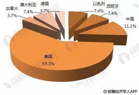 图表2:2017年全球医疗器械行业融资事件区域分布(单位:%)