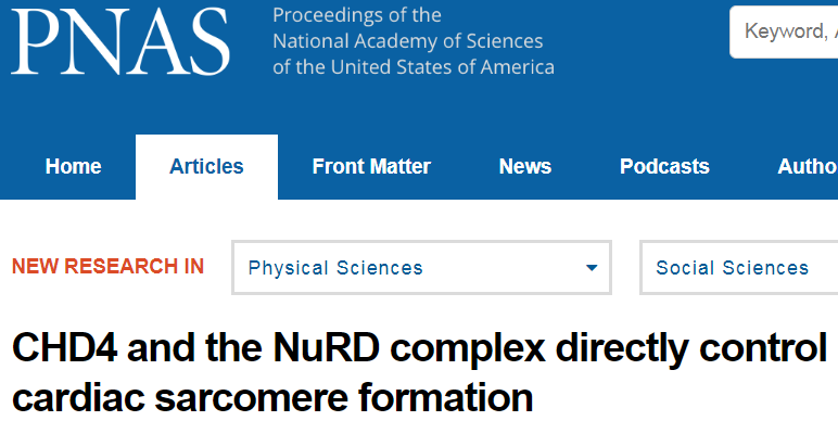 6月11日,PNAS杂志以“CHD4 and the NuRD complex directly control cardiac sarcomere formation”为题报道了这项研究成果,北卡罗来纳大学麦卡利斯特心脏研究所的Frank Conlon博士为论文的主要作者。