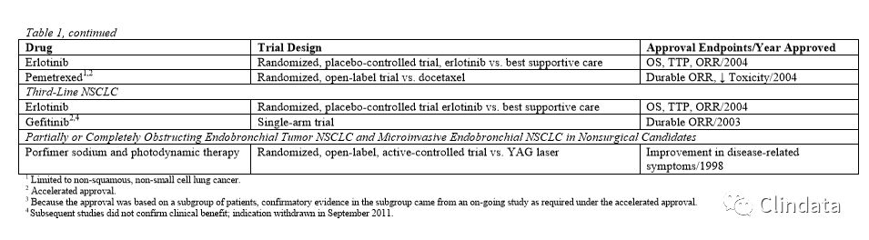 2003年4月15日,美国临床肿瘤学会(ASCO)与FDA举行了一次关于肺癌终点的公开研讨会,参与者包括FDA、ASCO、美国国家癌症研究所、学术界、利益相关团体以及行业代表。