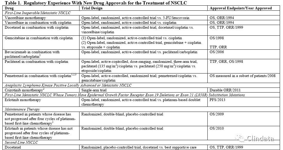 我们认为OS作为标准临床获益终点,应当用于在局部晚期或转移性NSCLC患者中确定治疗疗效。然而,基于人群和药物风险获益特征,药政机构作出决定时可以考虑其他终点。我们还认识到并非始终可以在局部晚期或转移性NSCLC患者中实施独立试验。