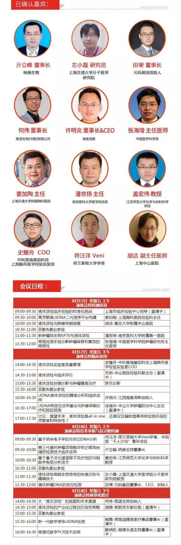 8月1号前注册并报名【2018液体活检新技术与临床应用论坛】,优惠多多!!! 液体活检作为临床意义重大、市场空间广阔的检测技术,随着人们的关注度持续上升,其技术层面的研究结果层出不穷。结合我国肿瘤发病率、液体活检适应症、未来市场渗透率等因素,行业分析人士预测,我国液体活检在未来5-10年内将达到200亿元左右的市场潜力。除了已具规模的产前检测领域之中的应用之外,液体活检在肿瘤早期诊断、预后评估、指导用药和动态监测方面有着巨大的研究潜力和可开发的巨大的商业价值。癌症的早期诊断和治疗指导及检测将是该产业链的核心价值。那么,如何突破现有技术瓶颈、扩展企业渠道占有能力并提高技术研发实力将直接决定企业在该市场中的地位。 由生物谷举办的“2018液体活检新技术与临床应用论坛”将聚焦国内外最新液体活检技术研究,邀请国内外科研院所专家学者、临床医生、检验机构、高精新技术企业进行分享,探讨液体活检技术的应用前景,为与会人员提供技术引进、项目合作和对接机会,同时,会议也将并为中小型企业提供展示和现场讨论机会。促进行业交流与合作。
