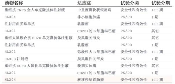 表:复宏汉霖在研药品临床试验情况表