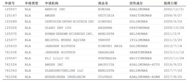 第四代全人源化单抗美国上市情况:FDA共批准11个四代单抗药品