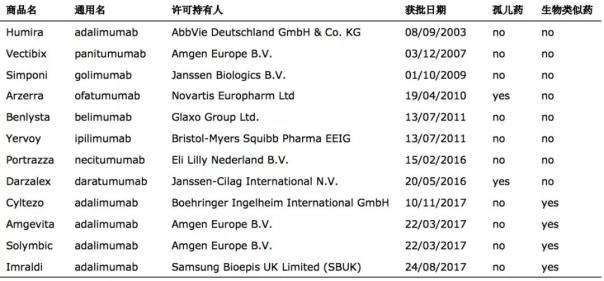表:欧盟批准的第四代单抗药