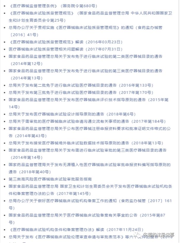 临床试验相关法规目录: