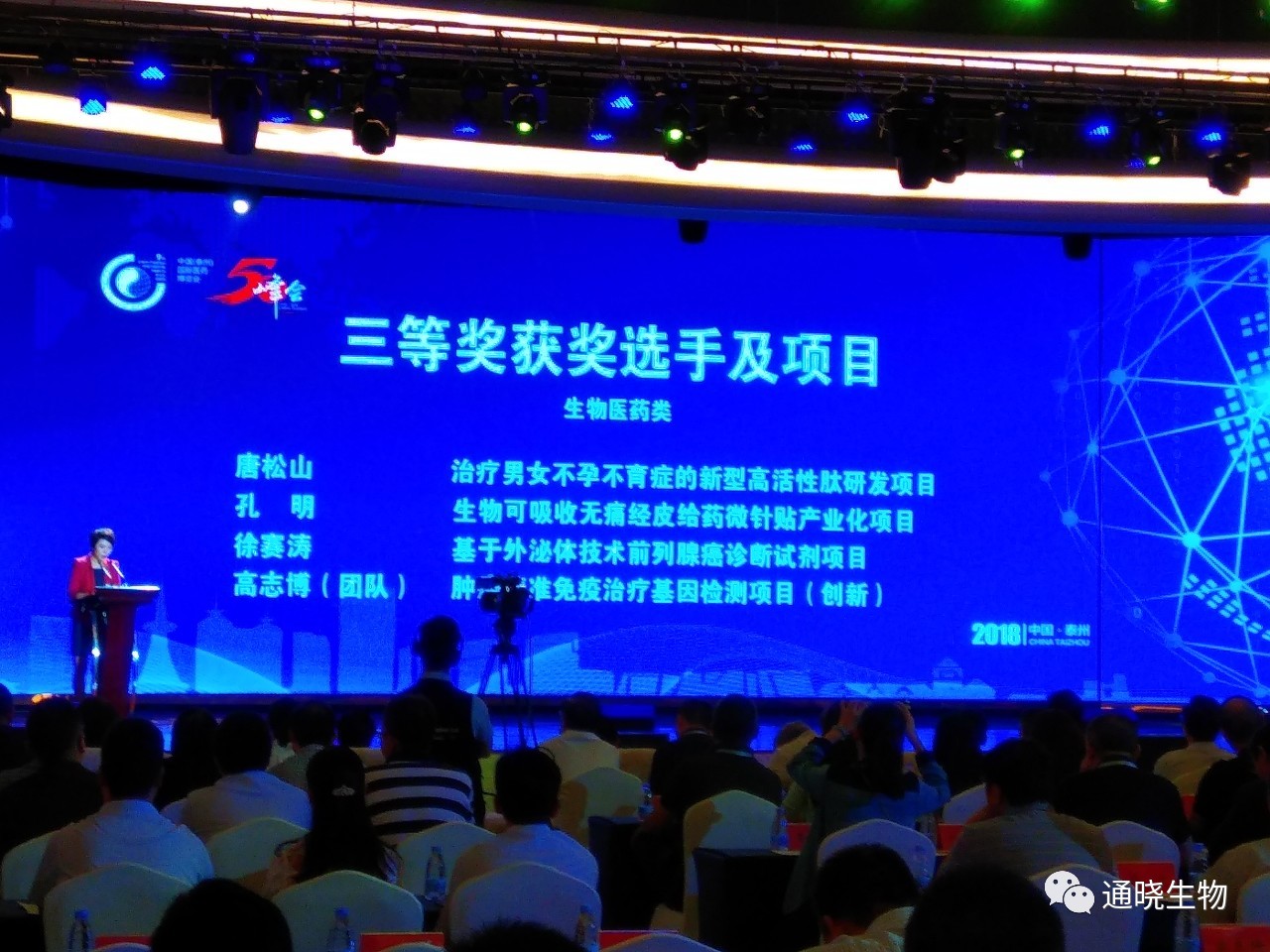 导读:为进一步吸引、集聚海内外高层次人才来泰州创新创业,推动高质量发展,泰州市委、市政府决定举办2018“才富泰州”暨中国医药城高层次人才创新创业大赛,经过200多个海内外高层次人才项目的层层选拔,通晓生物“基于液态活检外泌体技术的前列腺癌早期筛查与诊断试剂”项目成功入围决赛。 9月14日,经过精彩刺激的路演答辩及专家审评,通晓生物“基于液态活检外泌体技术的前列腺癌早期筛查与诊断试剂”项目获得生物医药类三等奖,可直接列入中国医药城“113医药人才特别计划”,并优先申报国家、省市人才项目。 颁奖现场,右三为通晓生物CEO陶瑞先生 关于“基于液态活检外泌体技术的前列腺癌早期筛查与诊断试剂”项目,通晓生物研发总监徐赛涛说到:此次我们的“基于液态活检外泌体技术的前列腺癌早期筛查与诊断试剂”项目获得2018“才富泰州”暨中国医药城高层次人才创新创业大赛生物医药类三等奖,是对我们团队所做工作的进一步肯定,该项目在国内临床应用的前瞻性价值是有目共睹的,由于中国人口老龄化、癌症发病年轻化等不可抑制的趋势,癌症的早筛显得日加重要。通晓生物不仅仅关注在肿瘤类早筛与诊断试剂,也在慢病(例如高血压、心血管等)、妇幼类疾病开展早期筛查与诊断试剂,为人们的健康生活保驾护航。 左:通晓生物CEO陶瑞先生; 右:通晓生物研发总监徐赛涛先生; 上海通晓生物技术有限公司(以下简称“通晓生物”)成立于2016年,总部坐落于上海国际医学园区,是一家集精准医学新技术研发、分子诊断产品转化、基因检测服务、IVD试剂盒研发及生产、干细胞临床应用的高新技术企业;公司已申请20多项专利,6项软件著作权,6项商标授权。同时,通晓生物已与国家人类基因组北方研究中心建立产学研医战略合作,共同建立以基因组医学为主导的精准医学临床转化及临床应用中心。 通晓生物下设连锁医学检验所、分子病理中心、IVD试剂盒研发中心、IVD试剂盒生产中心;公司拥有国际一流的技术平台,包括一代测序、二代测序平台、qPCR、ddPCR、Massarray、液相芯片技术平台、FISH平台等技术平台。