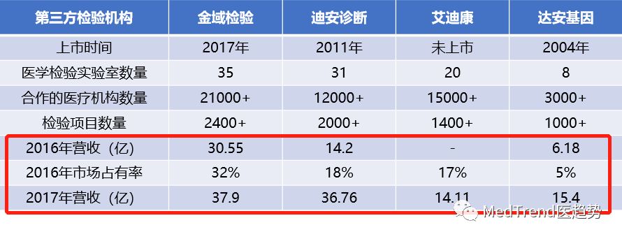 先行者肯定是比后来者要更加有优势。这就对企业的区域覆盖和扩张资本提出了新的要求。金域、迪安通过上市融资已经解决了这个问题,提前布局区域检验中心模式。
