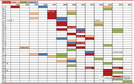 ▲1998-2015年,国内四大龙头检验中心区域扩张状况