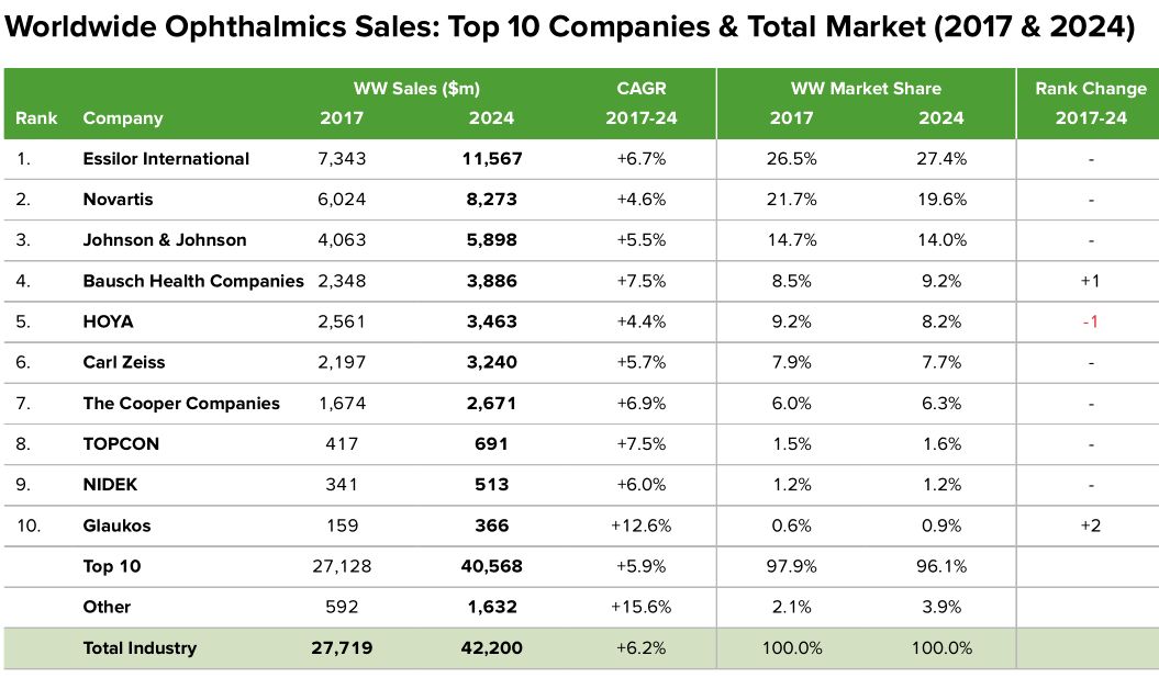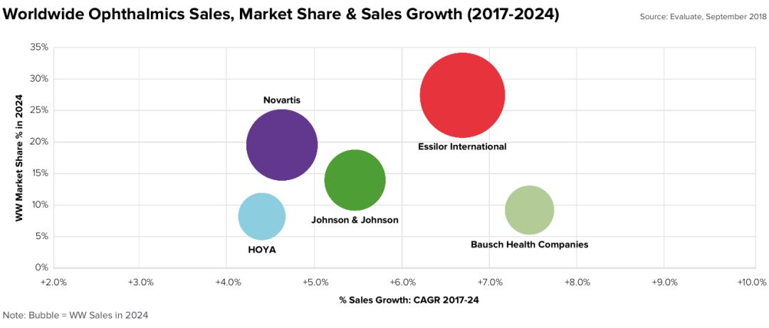 2024年,Essilor仍旧统领眼科器械领域,预计营收116亿美元。