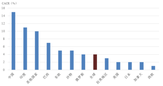 KaloramaInformation的分析显示,2016至2021年,全球体外诊断行业的年均复合增长率在4%左右,中国体外诊断行业的年均复合增长率则高达15%。 图 全球IVD市场2016-2021预计复合年均增长率