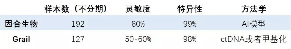 将因合生物的“肺影追凶”阶段性成果与前期GRAIL发布的结果相比较,我们可以看到如下结果:
