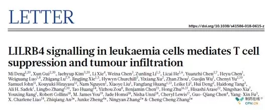 急性髓系白血病(Acute myeloid leukemia,AML)是一种异质性疾病,其特点是造血祖细胞发生不同的复发性细胞遗传学和分子畸变,进而导至骨髓中异常白细胞的迅速增加,从而影响正常血细胞的产生。目前已在患者中观察到至少11种遗传类别和近2000种不同的突变基因。这些复杂的突变模式使得要开发有效的药物疗法变得颇具挑战性,尽管目前存在少数可用的疗法,在过去40年间基本没有发生变化。根据美国国家癌症研究所的数据,每年在美国,大约有2万例新增AML病例,超过1万人死于该病。即使经过治疗,美国的五年生存率仍为27%。在中国AML发病率为1.62/10万,低于欧美水平,但是由于中国人口基数大,在中国患有AML的人数及其庞大。可以说,全球都在期待能够找到一种能够有效地治疗AML的疗法。 该论文的通讯作者张成城教授说:"我们一直对白血病尤其是急性髓系白血病很有兴趣,五年前通过生物信息学方法在急性髓系白血病患者细胞表面寻找可攻击的靶点,结果发现了LILRB4与病人生存相关性最大。"