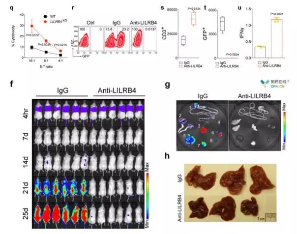 肿瘤细胞与T细胞共培养研究表明:LILRB4表达的肿瘤细胞可抑制T细胞生长,之后研究人员将肿瘤细胞上的LILRB4敲除,结果发现肿瘤细胞无法抑制T细胞增殖。