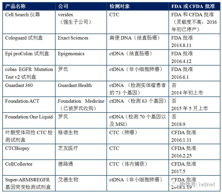 部分用于液体活检的产品