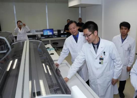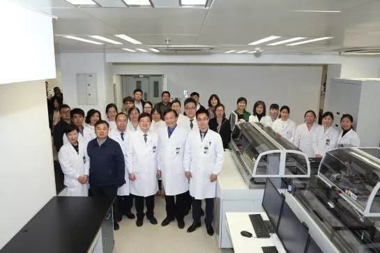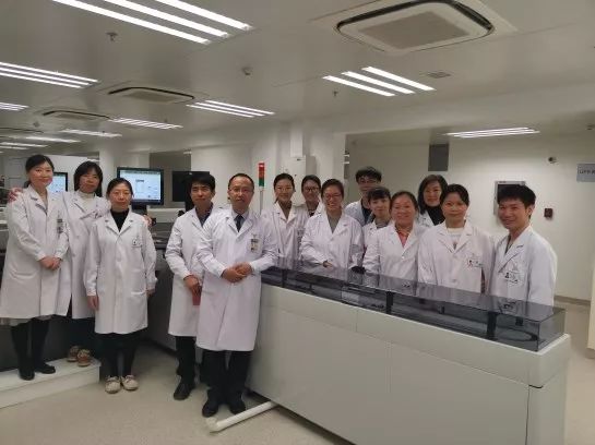 (徐英春主任、陈富强常务副主任共同启动流水线) 西单院区检验科即将全面启用的雅培A3600流水线包括进出样模块、离心机模块、开帽模块、生化检测模块、免疫检测模块、封膜模块、后处理冰箱,其高效率,多功能的特色会帮助检验科完善流程,提高质量,加快速度,节省成本。本流水线完美覆盖生化免疫标本检测的各个环节,并搭载全球最先进的ALINIQ智能软件管理系统,并可根据需求,定制个性化的IT解决方案,实现了在线质控和定标等多种自定义功能。它将全面改进现有生化免疫相关项目的工作流程,促进检验质量的大幅提升,满足西单院区未来发展的检验相关需求,将为临床和患者提供更加优质的服务。 检验科全体员工会秉承协和“严谨、求精、勤奋、奉献”的协和精神以及“准确、快捷、热情”的质量方针,按照医院统一部署,在西单院区大发展中更加积极主动,为协和百年贡献力量! (北京协和医院西单院区部分员工) |
