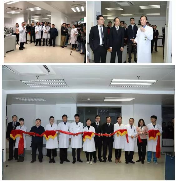 文/赵芳、 王冠华 图/王冠华 审阅/杨启文、陈富强 2018年11月7日,下午四点三十分,北京协和医院西单院区检验科举行了生化免疫A3600流水线的剪彩开机仪式。参加剪彩开机仪式的有西单院区党总支书记袁海鸿、检验科主任徐英春、医技党总支书记兼检验科常务副主任陈富强、检验科副主任李永哲、检验科副主任杨启文、检验科管理层团队、西单院区检验科全体员工以及雅培公司团队。 (袁海鸿书记、徐英春主任、陈富强常务副主任、李永哲副主任、杨启文副主任及检验科员工在流水线前合影) 剪彩仪式开始前,杨启文副主任全面介绍了西单院区检验科新实验室的布局,包括急诊区、临检区、生化免疫区、性激素检测区、微生物区、分子生物学区、库房、UPS间、纯水间、员工休息区等。四点三十分,生化免疫A3600流水线的剪彩开机仪式正式开始,仪式由杨启文副主任主持。徐英春主任为开机仪式进行了简短而热情的致辞,代表检验科感谢为流水线建设付出辛勤汗水的所有同志。紧接着大家共同观看了流水线建设的短视频。视频带领大家回顾了流水线建设的精彩瞬间和流水线上各模块的功能介绍。随后,徐英春主任、陈富强常务副主任、李永哲副主任、杨启文副主任以及雅培公司高管共同为流水线的启用剪彩。随着徐英春主任和陈富强常务副主任共同按下流水线的启动键,标志着西单院区A3600生化免疫流水线正式启动。 (为新仪器剪彩)