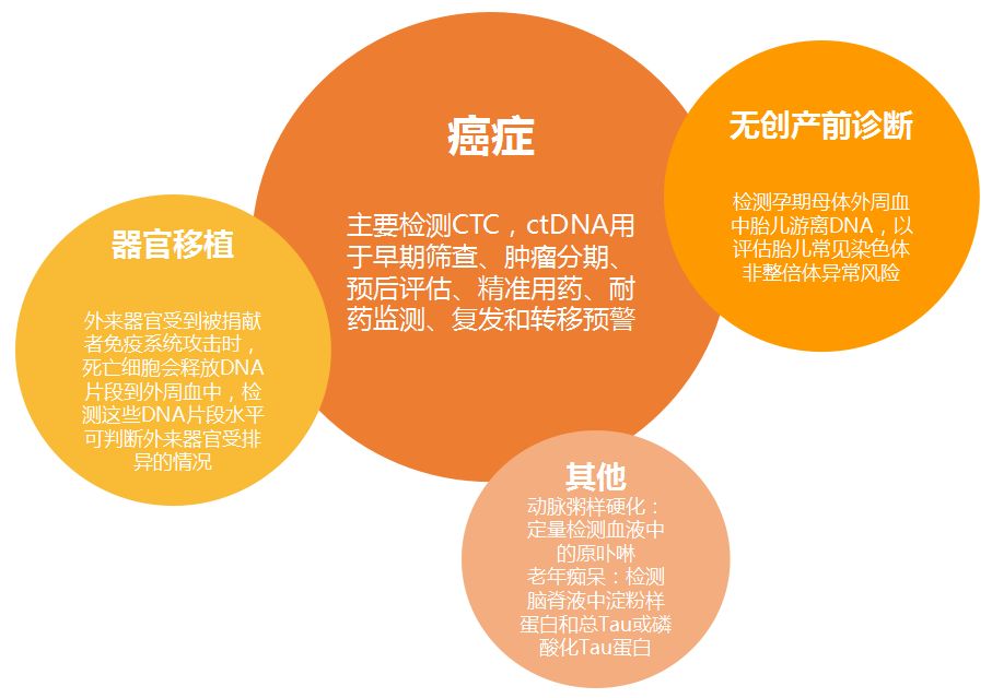 |来源:金氪 |作者:宽华投资投研团队 导语 继金氪平台连续推送了三篇关于液体活检行业的文章后,本次将发布行业篇的最后一篇文章。本篇将主要对液体活检的发展现状、面临的问题以及未来的发展趋势进行介绍。 发展现状 1.1 应用场景广阔,但在癌症领域最为广泛 液体活检是一种新兴的疾病诊断和监测工具,可应用于癌症、产前诊断、器官移植等系列疾病。据Piper Jaffray预测,2026年广义液体活检全球市场总容量约326亿美元,包括癌症领域286亿美元、无创产前诊断(NIPT)20亿美元、器官移植20亿美元。在众多应用场景中,液体活检在癌症领域的应用占据超过85%的市场份额,因此狭义的液体活检定义为针对肿瘤诊断与治疗领域。