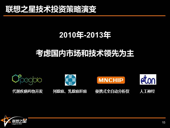 我们的投资策略,也从2013年之前考虑国内市场容量和技术领先为主,演化成近5年来我们更关注可被国际合作检验的创新(创新性)、有做药经验的创始人及团队(速度)、产品是否围绕未被满足的临床需求(独特性)等。