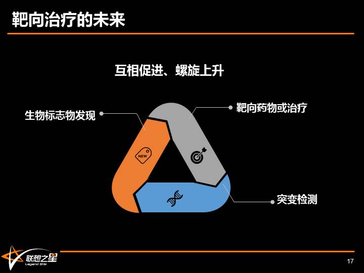 从靶点的视角来看竞争与机会:这两张图梳理了肿瘤领域相关靶点的开发数量,上面是追随热门前10的靶点,下面是国外开发较多国内较少的前10靶点,我们看到CD19、PD1/PDL1这些热门靶点,中国开发中的药物数量竟然远远超过了美国,国内pd1两家进口,4家国产报证,君实已经进入行政审批阶段,临床中还有70多家。所以,我建议这70多家应该考虑一下,还要不要继续做下去了,因为后面花的钱比前面多得多,但假设这70多家真的都继续做下去,那么已经上市的pd1就尴尬了,因为很大比例的病人会在临床入组免费用药中分流。 从靶点的角度,可能的机会也许出现在,美国已经开发比较成熟,但是国内开发竞争还比较少的靶点上,不过这些药物也需要考虑市场空间,比如标志物相关潜在病人数量。上个月FDA批准的TRK抑制剂,大家应该记得那个广为流传的惊人标题,就是所谓广谱抗癌药上市治愈率75%。首先,肿瘤治疗行业,还没有治愈率的准确定义,只是一般认为生存期超过五年等同于治愈,但是我们去看临床研究的资料,其实75%是客观缓解率(肿瘤缩小超过30%或者消失),且,持续有效超过1年的病人只占39%;其次,NTRK基因融合发生突变主要发生在一些罕见癌种,而且即使是罕见癌种,突变率也不到10%,在肺癌里更是不到1%,所以其实能受益的人群并不多,完全不是标题党所谓的“广谱”,所以正确的说法是在有突变的病人中有75%人的应答。不过,只要是靶向药物上市,对于测序公司来说却是明确受益的,因为耐药人群会希望看一下自己是否是符合用药条件。 中国新药研发企业完成原始积累的必经之路:美国排名前10位的药厂,市值总计19300亿美元,中国排名前10位的医药上市公司,市值总计约1500亿美元。美国前两大药厂,市值加起来约6400亿美元,约等于中国2016年的医疗支出规模。