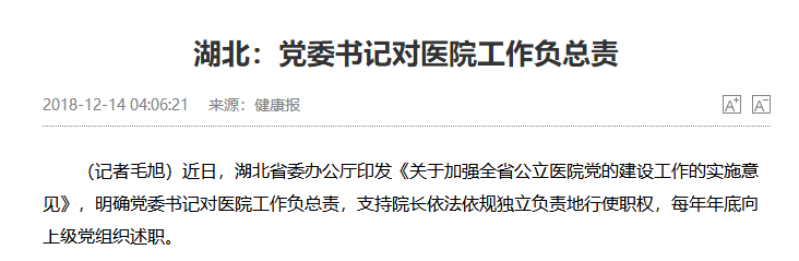 然而,对于公立医院里,到底的书记大还是院长大,一直是大家普遍关注的问题。
