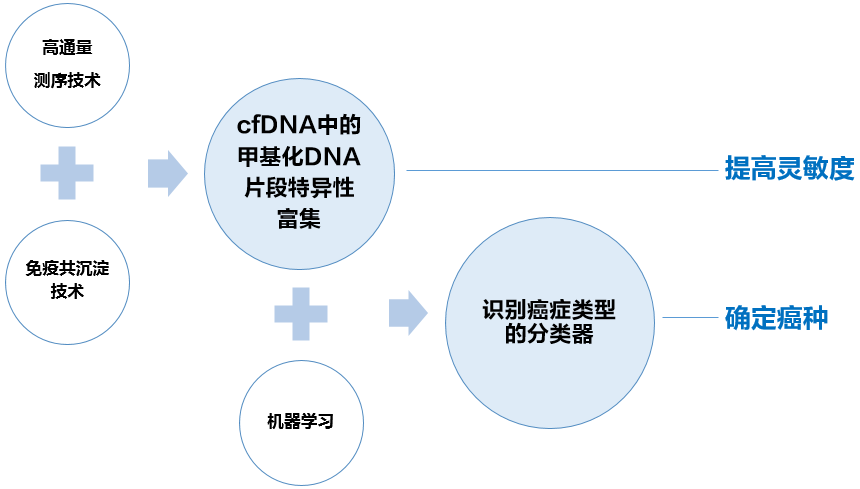 癌症是威胁人类健康的重要疾病,癌症早筛对于癌症的预防和治疗意义重大。今天小编为大家解读一篇癌症早筛和区分癌种的基因测序新方法,该文刊登在《Nature》,原文题目为Sensitive tumour detection and classification using plasma cell-free DNA methylomes。 目前,肿瘤诊断和治疗的金标准是肿瘤组织活检,但随着对肿瘤研究的深入,科学家们发现,这一金标准并不完美,存在一定的局限性,如:因肿瘤的动态变化,首次诊断的组织活检可能无法反映当前肿瘤状况(具有一定的滞后性);局部取样可能无法反映全身癌变情况;组织活检具有侵入性,会出现多种潜在并发症,重复取样受限等。 一、液体活检能够弥补组织活检的不足 随着科技的进步,非侵入性、且可在不同时间点重复取样的液体活检技术得到迅速的发展,因其正好能够弥补组织活检的不足,使得其在癌症检测方面应用的研究日益增多,因而备受关注。(注:因液体活检不能提供病理学诊断及蛋白表达检测的重要信息,目前尚不能取代组织活检) 二、常规液体活检在早期癌症检测中的瓶颈 液体活检的主要研究对象是血浆游离DNA(cfDNA)。cfDNA是血液中细胞成分之外的小片段DNA,是细胞凋亡或坏死后释放入血的,在健康人血液中含量极微,而在癌症患者血液中显著升高。循环肿瘤DNA(ctDNA)则是由肿瘤细胞释放到血液中的DNA,属于cfDNA的一部分。 cfDNA vs ctDNA ctDNA的分析具有很高的临床应用价值。目前,大多数液体活检采用基于血浆cfDNA的体细胞突变检测方法来检测ctDNA,然而,由于早期癌症患者高频突变数量有限,致使检测的灵敏度低。 三、DNA甲基化检测 早期癌症的筛查及治疗后微小残留病灶的检测往往需要检测灵敏度超出当前检测技术限制的检测方法。相较于体细胞突变检测,针对不同癌种组织的大规模表观遗传变化(DNA甲基化是目前研究的比较充分的表观遗传修饰形式)检测方法的灵敏度不依赖于患者高频突变数量,对于早期癌症的检测具有更大的潜力。 四、甲基化游离DNA免疫共沉淀测序 由于血浆cfDNA的丰度低且碎片化程度高,限制了大部分血浆甲基化特异性PCR检测方法的应用,相关检测研究也存在较大的挑战。虽然有科学家尝试利用全基因组甲基化测序(WGBS)进行甲基化的检测,但是,由于在亚硫酸氢盐转化过程中DNA降解率高达84%-96%,且检测成本高、信息覆盖不全面,导至检测到的癌症易感基因(CPGs)丰度低。 为了突破现有检测技术的限制,来自加拿大多伦多玛格丽特公主癌症中心的Shu Yi Shen等研究者开发了一种灵敏的、可分离、检测和分析低水平甲基化DNA的甲基化游离DNA免疫共沉淀测序(cfMeDIP-seq)方法。该方法将免疫共沉淀技术与高通量测序结合,通过对cfDNA中的甲基化DNA片段(富含CpG区域)进行特异性富集,提高检测效率。同时结合机器学习构建一种分类器,能够识别血液样本中癌症来源的DNA,并确定癌种。 cfMeDIP-seq技术简图 五、甲基化游离DNA免疫共沉淀测序的五大优势 (一)上样量可低至1~10ng 因多数血浆样本cfDNA含量远低于100ng,研究者优化了现有的低上样量甲基化DNA免疫共沉淀测序(MeDIP-seq,≥100ng),使得cfMeDIP-seq的上样量可低至1~10ng,通过大量的实验证实:该检测方法可重现MeDIP-seq(100ng)、简化甲基化测序(RRBS,1000ng)和全基因组甲基化测序(WGBS,2000ng)的检测结果。提示该检测方法的灵敏度高,准确性与其他检测方法相当。 (二)CpG富集倍数可达到上样前的2倍 研究者发现:与MeDIP-seq相比,cfMeDIP-seq在结直肠癌cfDNA甲基化检测中表现出更强大的检测重复相关性。由于结合了免疫共沉淀技术,其CpG富集倍数可达到上样前的2倍。同时,研究人员还将cfMeDIP-seq与超深度杂交捕获突变测序进行了比较,发现cfMeDIP-seq在ctDNA检测中有着较高的灵敏度。 (三)检测甲基化cfDNA追踪早期癌症ctDNA水平 研究者选取24名早期胰腺导管腺癌(PDAC)患者作为病例组,24名年龄、性别相当的健康人作为对照组,分别运用cfMeDIP-seq技术进行血浆cfDNA的检测,共识别出14716个不同的甲基化修饰区域(其中病例组9931个,对照组4785个)。通过检测两组参与者的组织样本,获得了45173个差异甲基化CpGs。结果发现:血浆cfDNA信号与来源于肿瘤组织的ctDNA中的DNA甲基化相关,提示该方法能够通过检测甲基化cfDNA追踪早期癌症的ctDNA水平。 (四)检测癌症的灵敏度高 研究者通过生物信息学模拟,检测了不同数量的差异甲基化区域(DMRs)、覆盖率和ctDNA丰度的检测概率。结果发现随着差异甲基化区域(DMR)的增加,即使在较低测序深度和ctDNA丰度下,检测灵敏度也随之增加。提示:该方法的检测灵敏度高。 (五)筛查早期癌症的同时高准确率的区分癌种 研究者对来自7个癌种[胰腺导管腺癌(PDAC)、结直肠癌(CRC)、乳腺癌(BRCA)、肺癌(LUC)、肾癌(RCC)、膀胱癌(BLCA)、急性髓细胞性白血病(AML)]的病例组及健康对照组的189份血浆样品进行cfMeDIP-seq检测。结果发现:该检测方法可以通过识别特定的ctDNA甲基化谱区分癌种。紧接着,研究者进行了机器学习分析,基于大数据创建能够“识别血液样本中肿瘤DNA存在”以及“确定癌种”的cfDNA甲基化分类器,结果显示:该分类器主要由肿瘤特异性DNA甲基化模式驱动,而不是由肿瘤微环境中的血细胞或细胞组成的波动驱动,能够在早筛的同时高准确率的区分癌种。 总结: 该研究将高通量测序技术、免疫共沉淀技术及基于大数据的机器学习方法相结合开发了cfMeDIP-seq检测方法,通过大量的